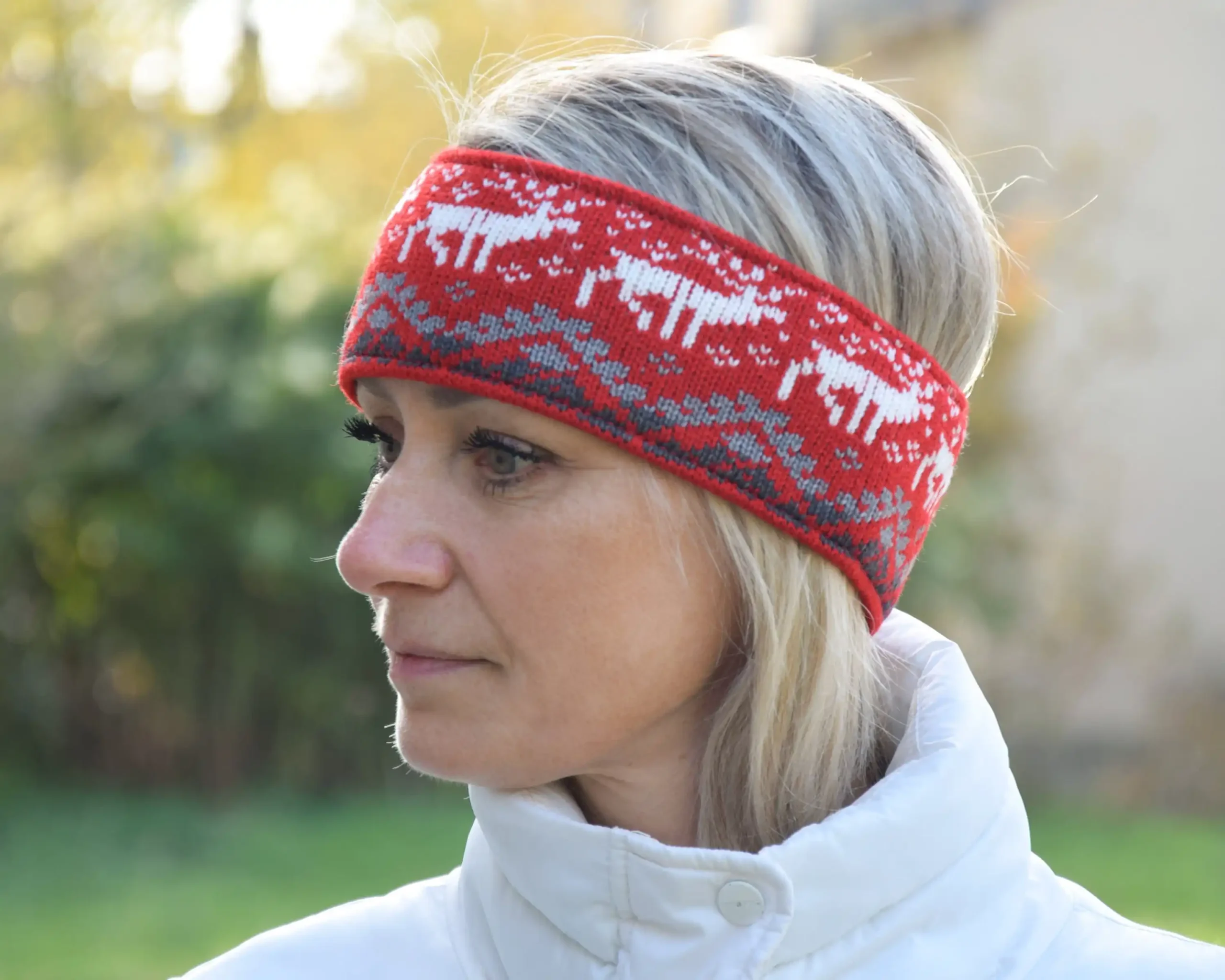 Men & Women Red Headband Nordic Woolen Head bandage with fair isle Icelandic pattern