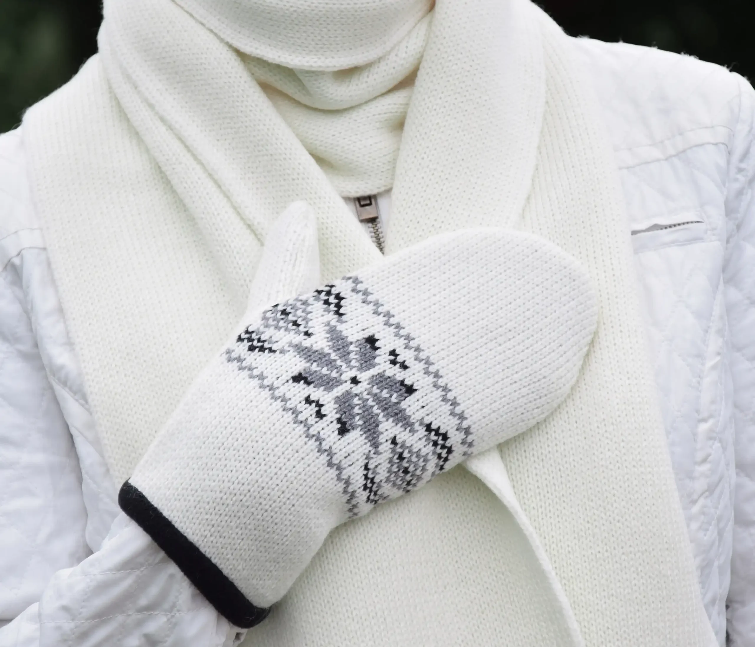 White Scandinavian Woolen Mittens fleece-lined with Simple Nordic pattern